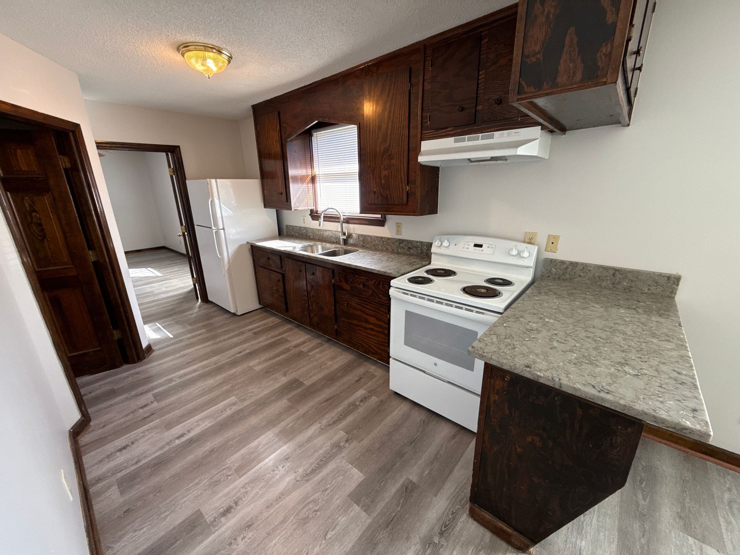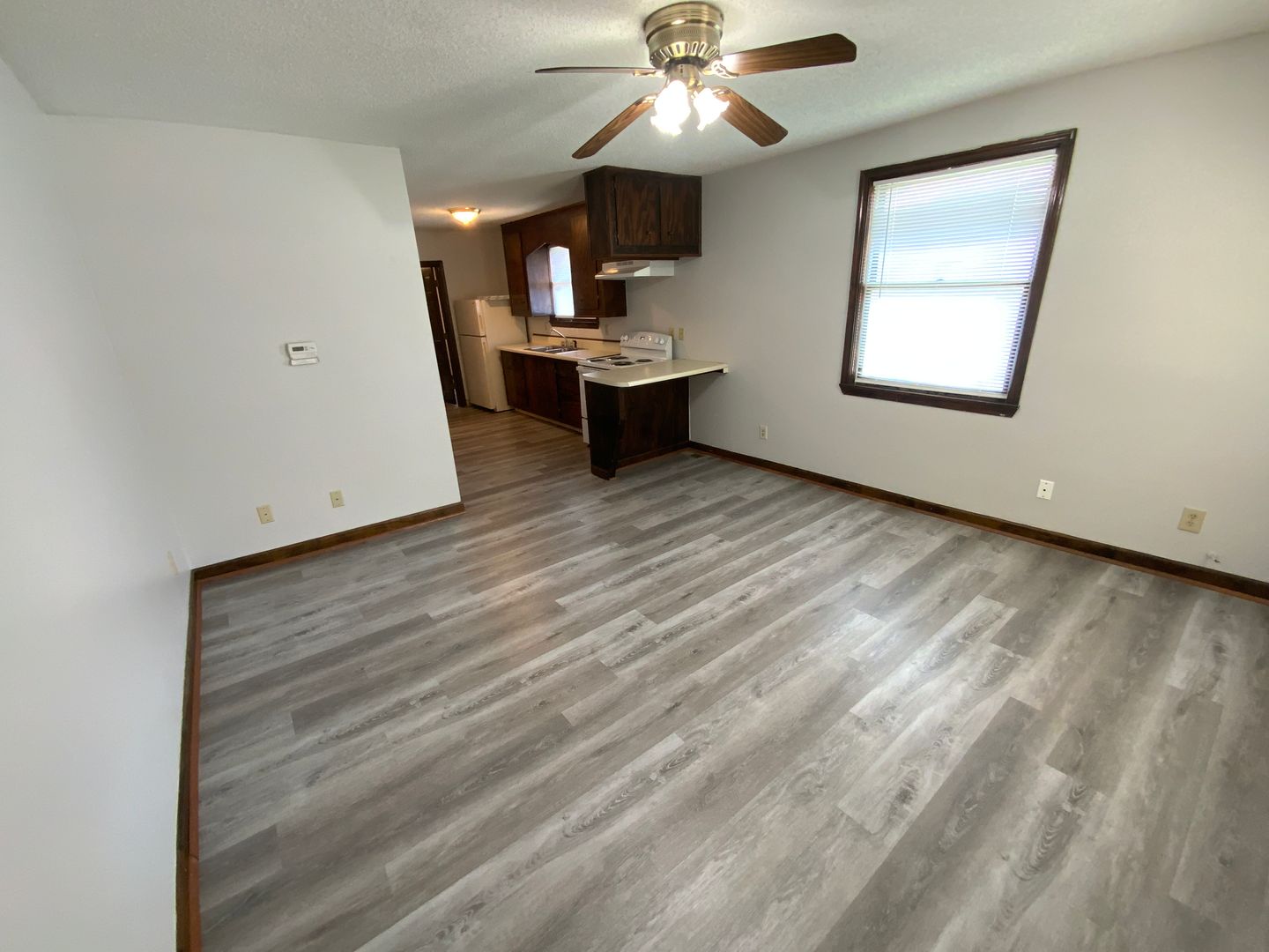 Downtown: 1 bedroom, 1 bath apartment. Includes stove, refrigerator, washer/dryer hook-ups and central heat & air. Property uses gas. Water and lawncare is included. No pets